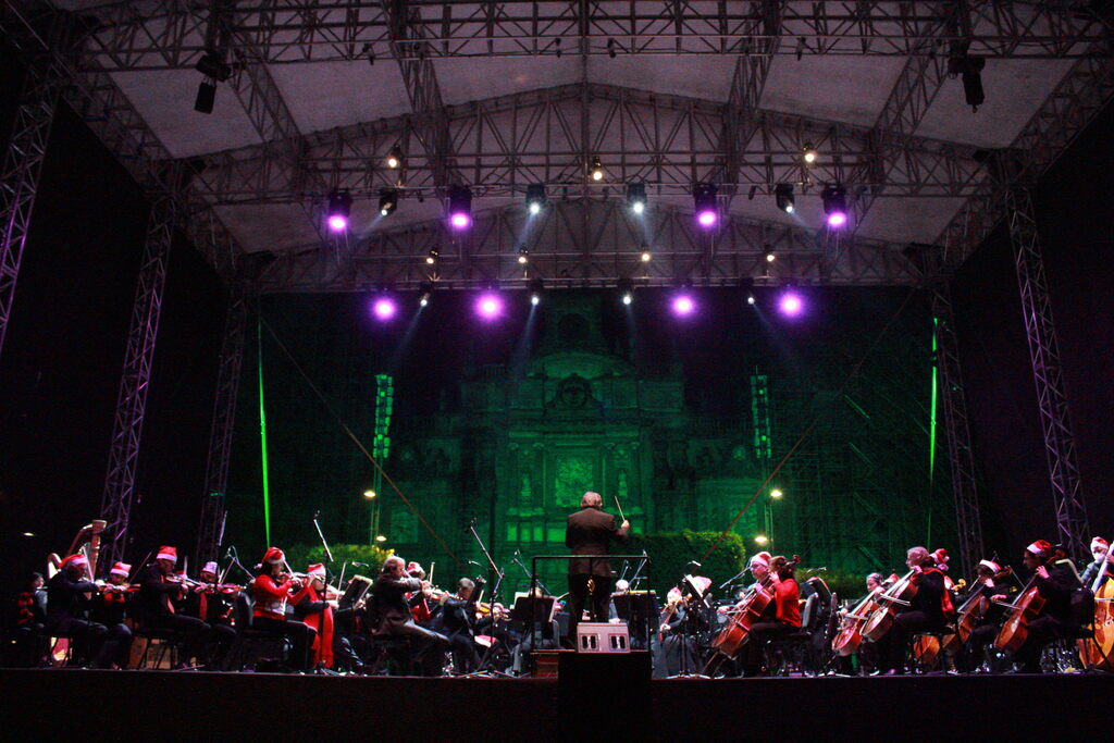 Ciudad de México.- Dando comienzo a la oferta cultural que el Gobierno de la CDMX estará llevando a cabo durante la temporada de decembrina, este 10 de diciembre, la Orquesta Filarmónica de la Ciudad de México (OFCM) esparció la magia musical de la época desde el Zócalo capitalino ante 20 mil asistentes.
