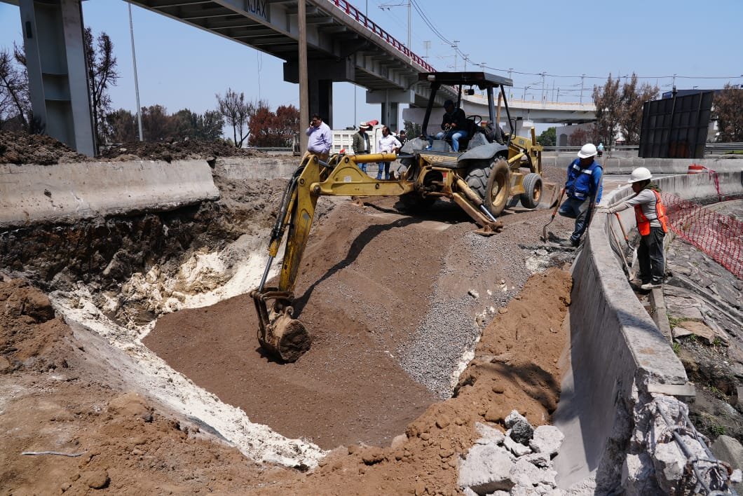 Durante la noche del martes y la madrugada miércoles, la dependencia realizó trabajos de excavación y el vaciado de tepetate con agua para el taponamiento de grietas. Una vez concluidas estas labores se procederá a la construcción de una caja disipadora a una profundidad de 1.5 metros para contener y mantener la estabilidad del terreno intervenido.