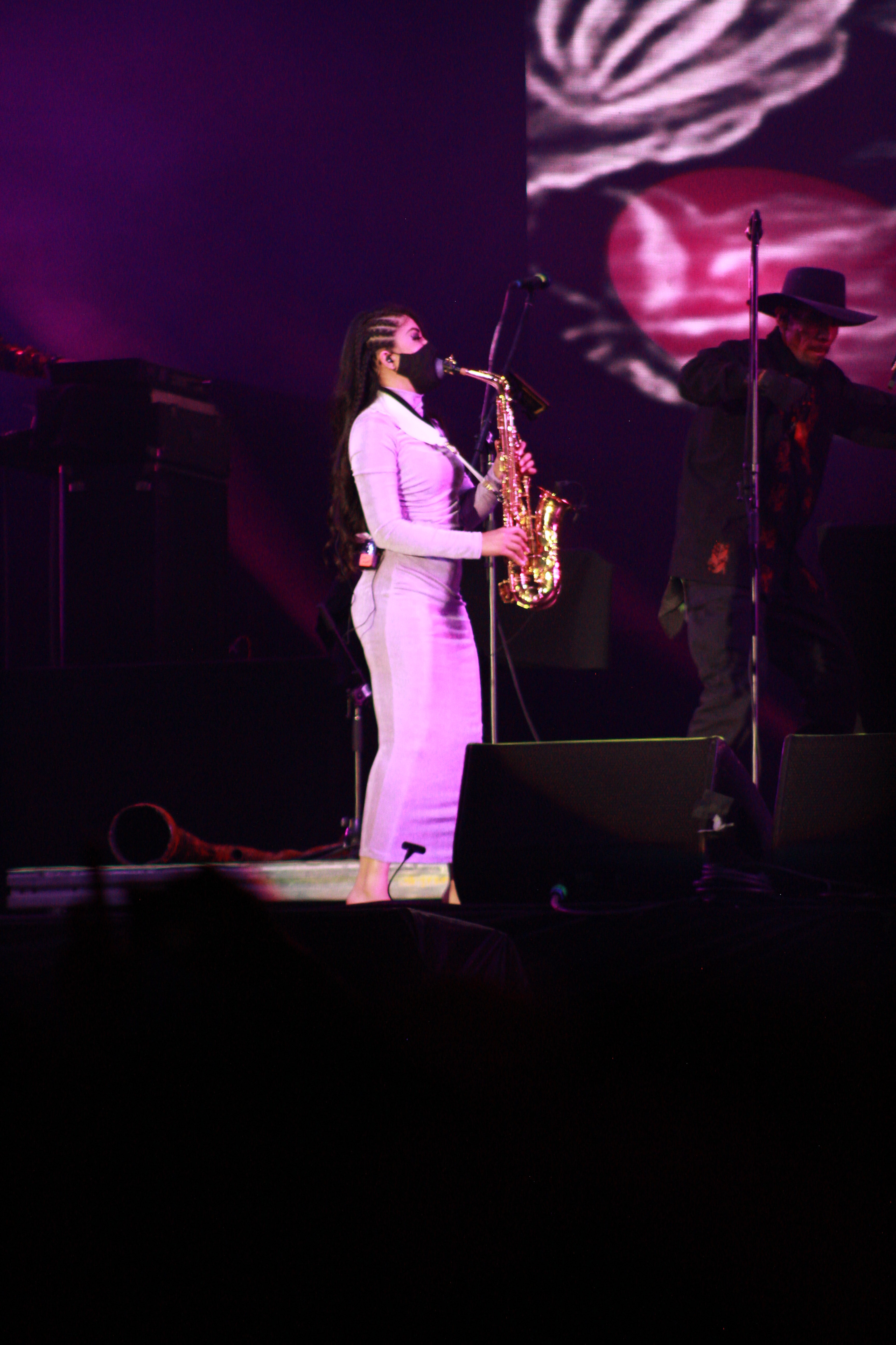 Una de las grandes sorpresas en el concierto fue la presencia de la saxofonista Elena Ríos, quien previo a acompañar a la banda musical con su gran talento, fue presentada por Roco Pachukote expresando: “¡Este es el tiempo de las mujeres!”.