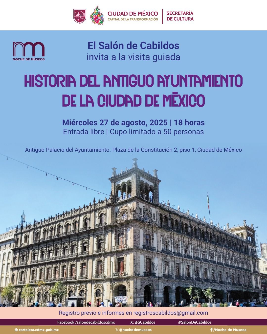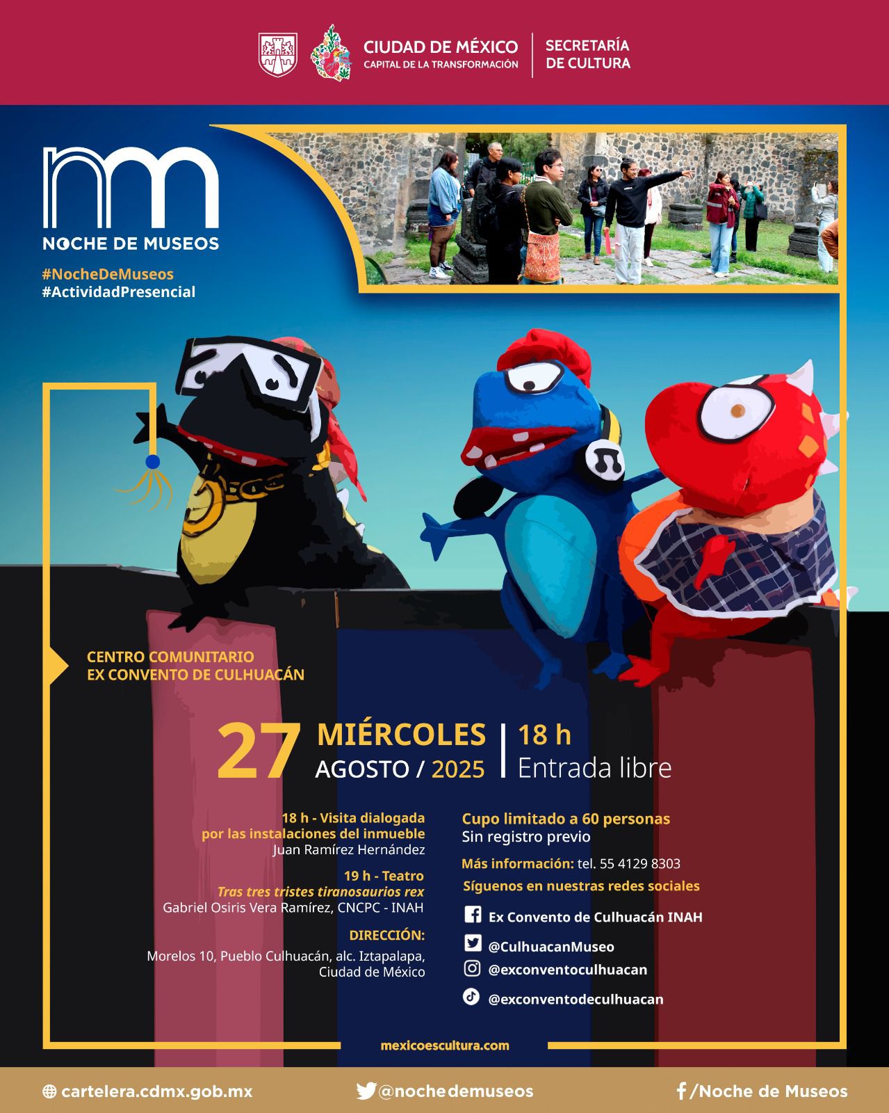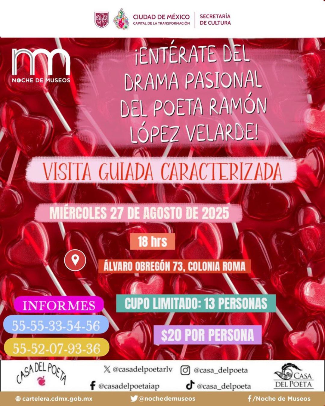 Ciudad de México.- El próximo miércoles 27 de agosto la capital vivirá la octava edición de la Noche de Museos 2025, una jornada en la que más de 80 espacios culturales extenderán horario para ofrecer arte, ciencia, música, cine, talleres y recorridos para todas las edades. La Secretaría de Cultura de la Ciudad de México impulsa esta agenda que convierte el centro y los barrios en un gran corredor nocturno de experiencias.