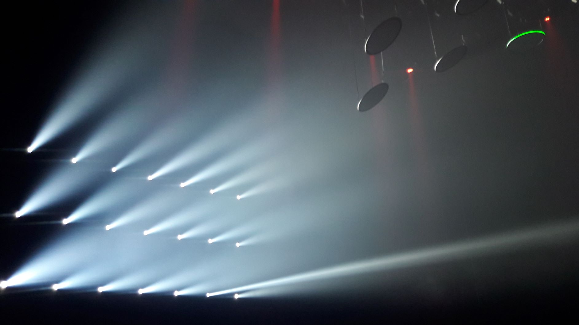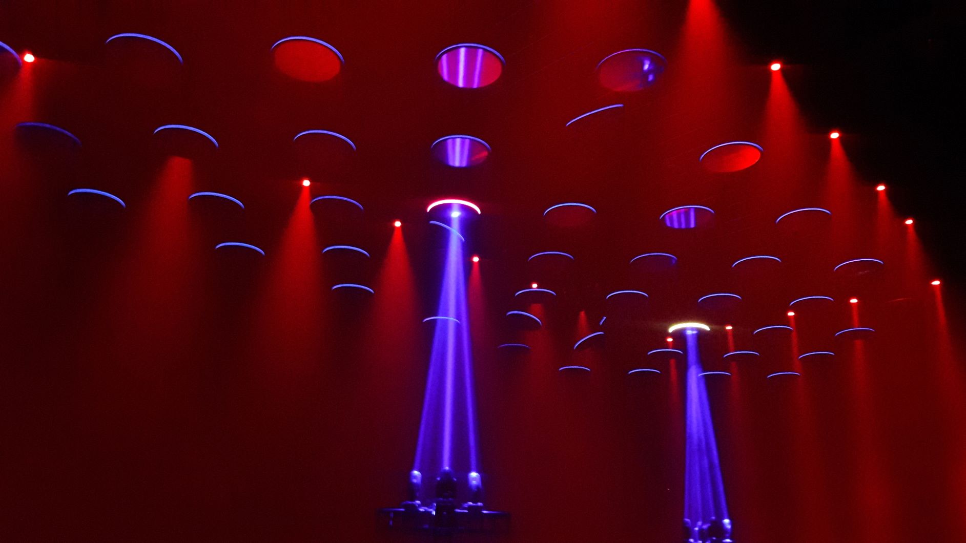 Los espejos suspendidos se mueven para construir formas y hacer que la luz de los reflectores vaya en múltiples direcciones. Además del azul y el blanco, los colores que iluminan el Frontón México durante los 45 minutos de duración de esta experiencia sensorial son: rojo, verde, amarillo y morado, acompañado cada uno de una pieza musical distinta en tono, pero siempre conservando la sobriedad y lentitud.