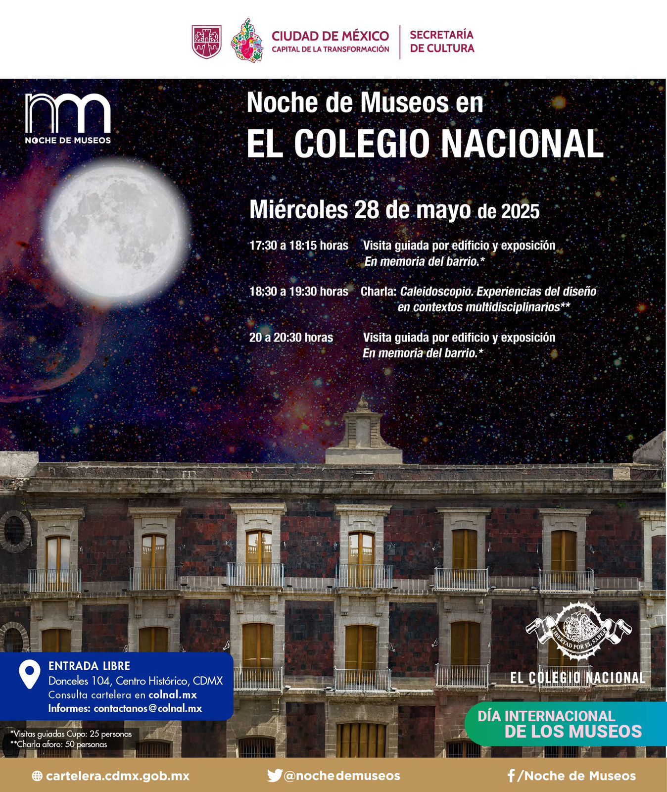 En esta edición, se suman espacios emblemáticos como El Colegio Nacional, que ofrecerá visitas guiadas y una charla especial para el público asistente. Asimismo, el Museo de Memoria y Tolerancia presentará una exposición temporal sobre la vida de Ana Frank, con visitas guiadas entre las 17:00 y las 19:00 horas, recorridos libres hasta las 21:00 y un concierto con lo mejor de Broadway a las 19:00 horas. También se integra el Museo Nacional de la Cruz Roja Mexicana, con recorridos guiados y acceso libre a sus instalaciones históricas.